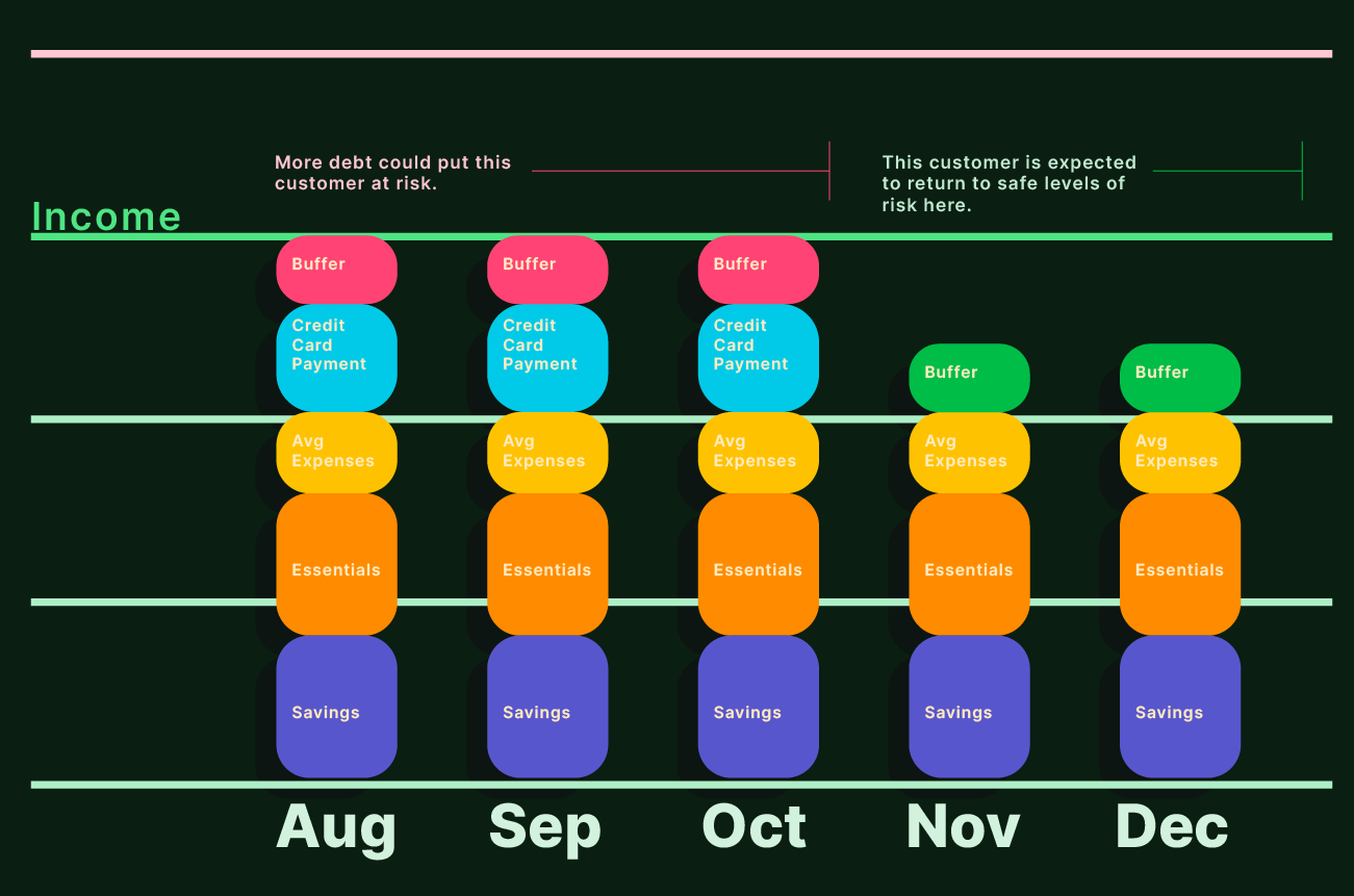 What if your credit card could look at what you’re currently paying off and factor in your income, essential outgoings like rent, mortgage, phone, how much you tend to spend on other things, like groceries, gym, streaming and then work out if you’re at risk of being unable to pay all that plus additional in instalments on your credit card.